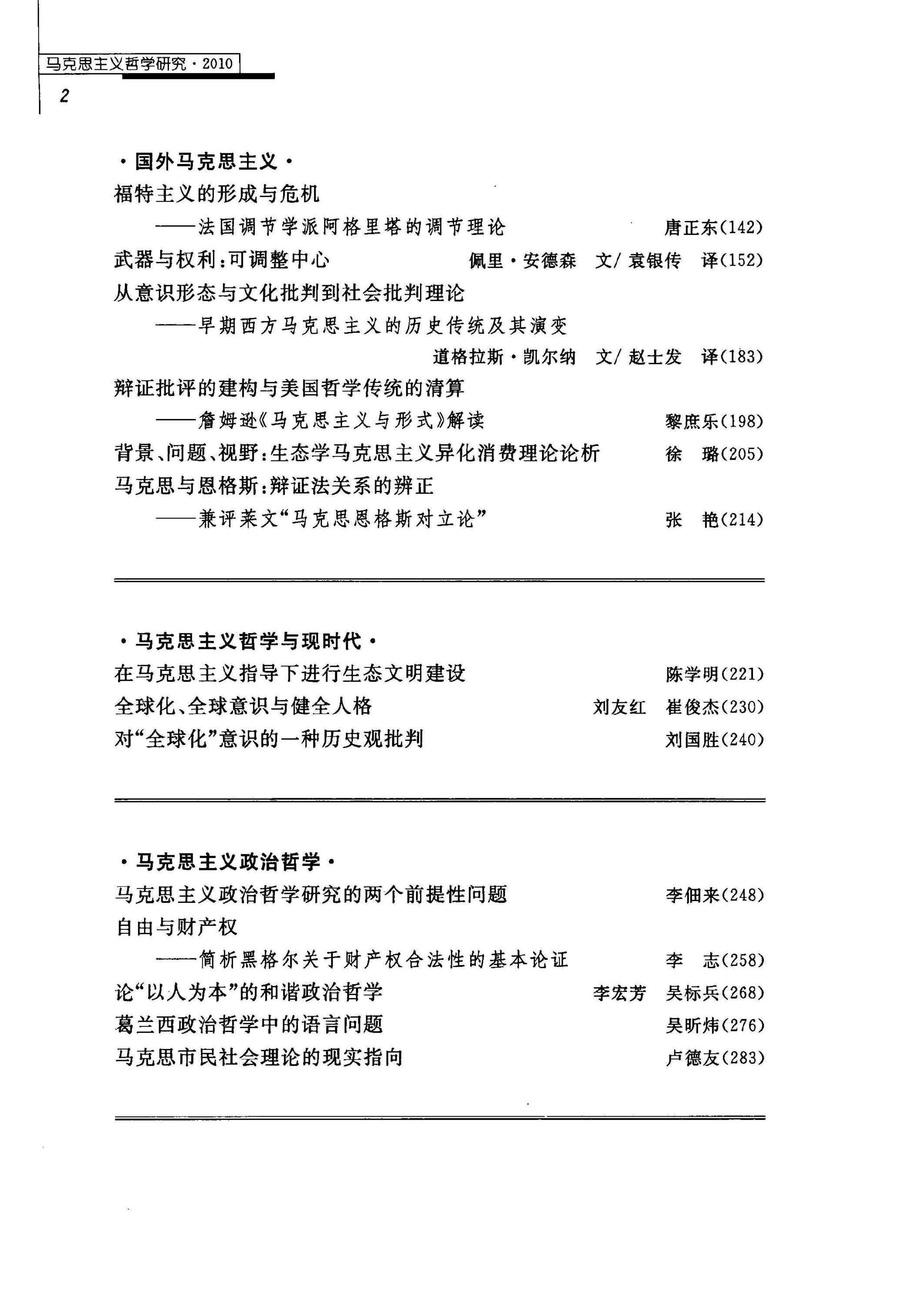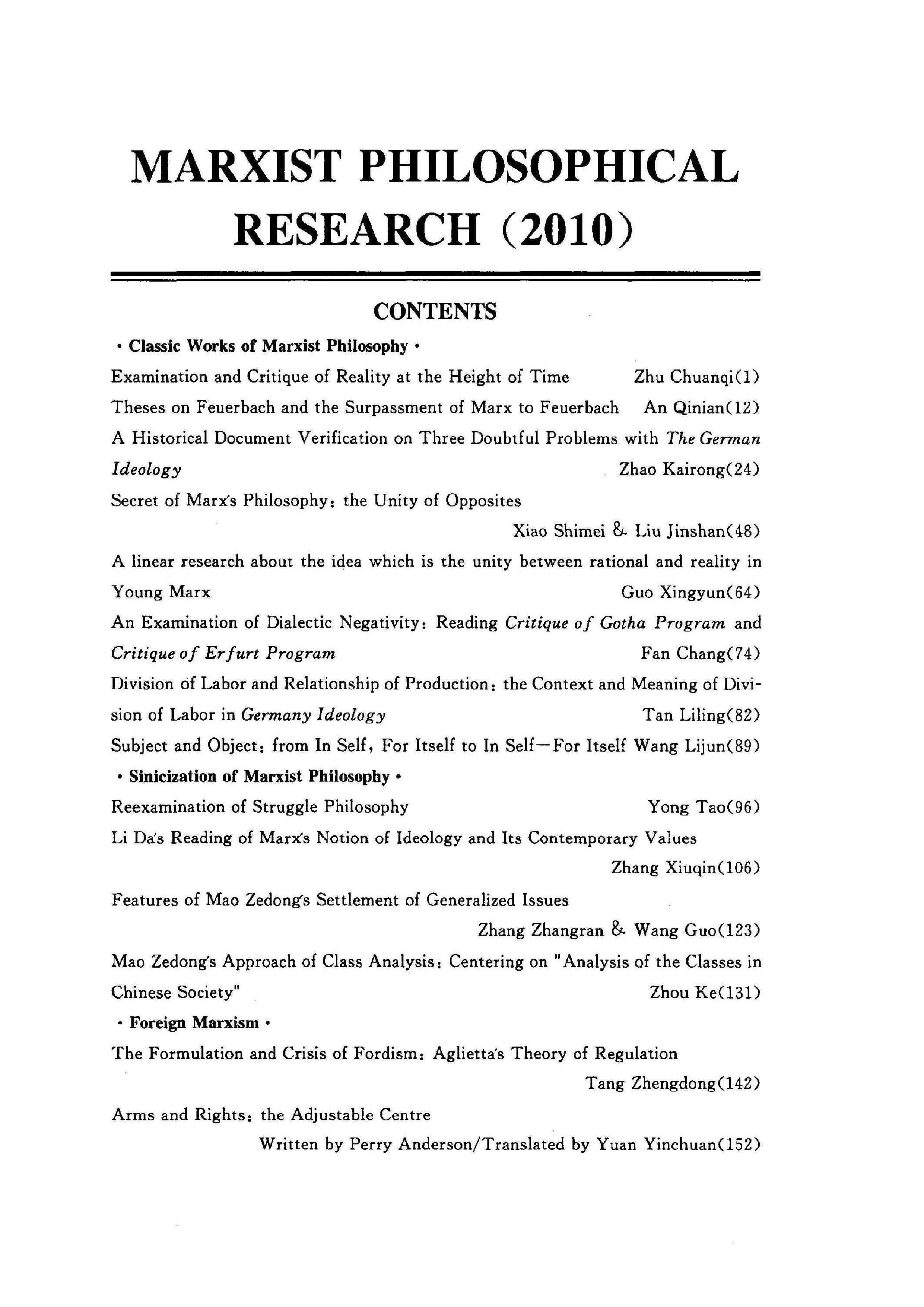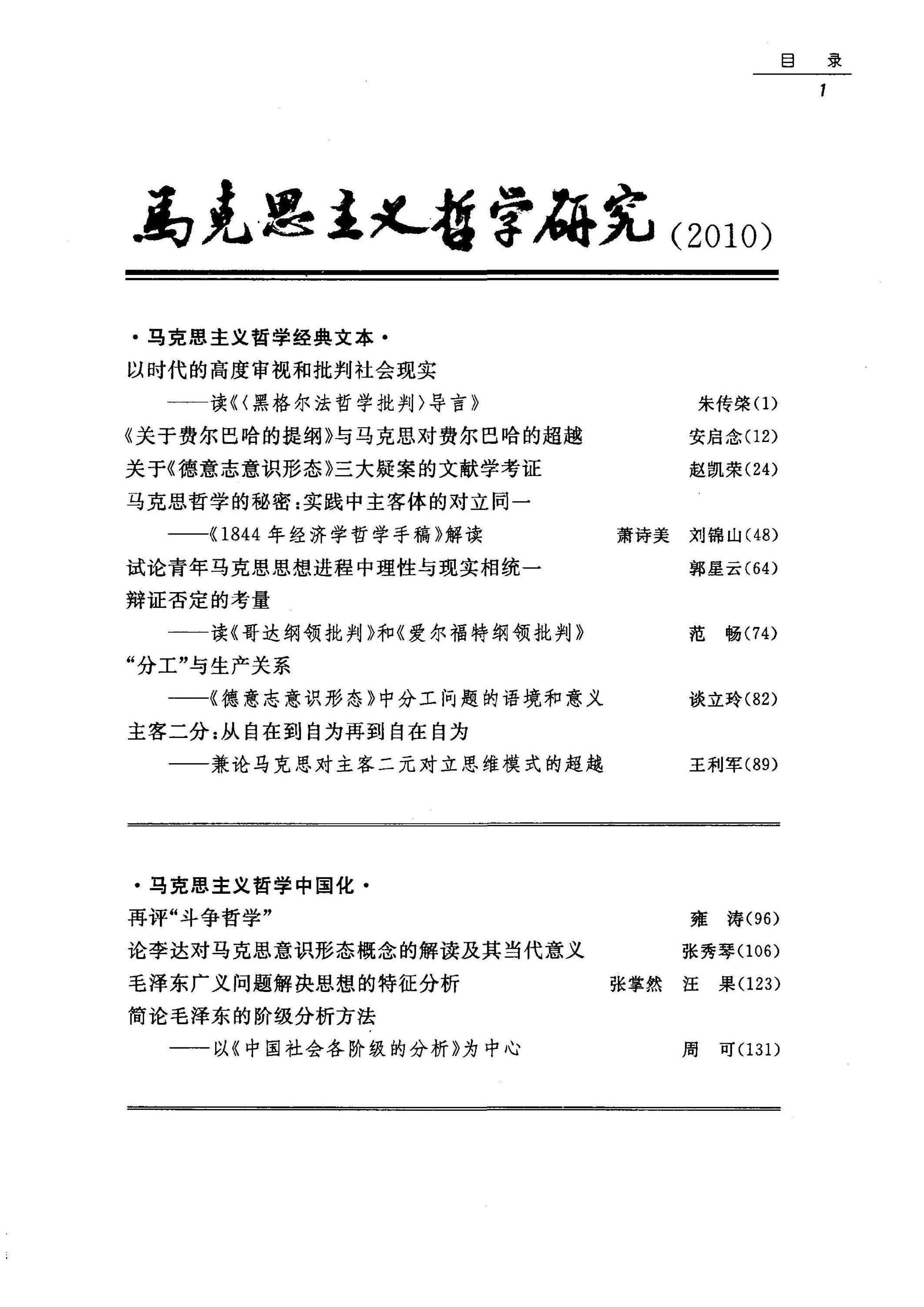 《马克思主义哲学研究》(2010年)
