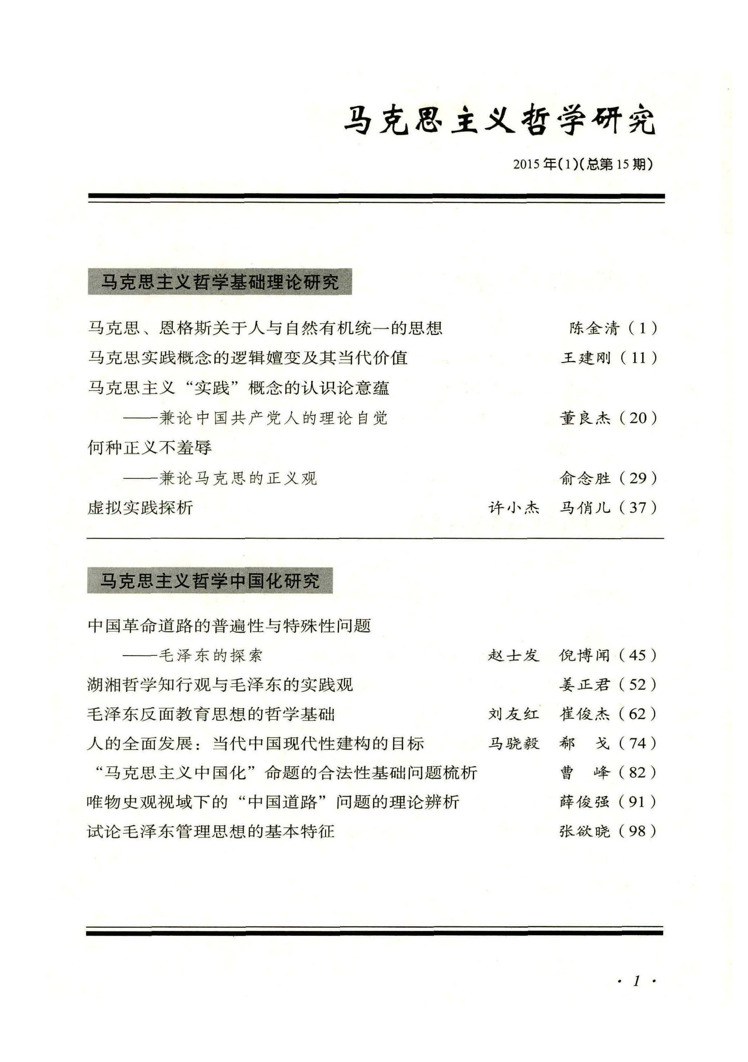 《马克思主义哲学研究》(2015年第1期)